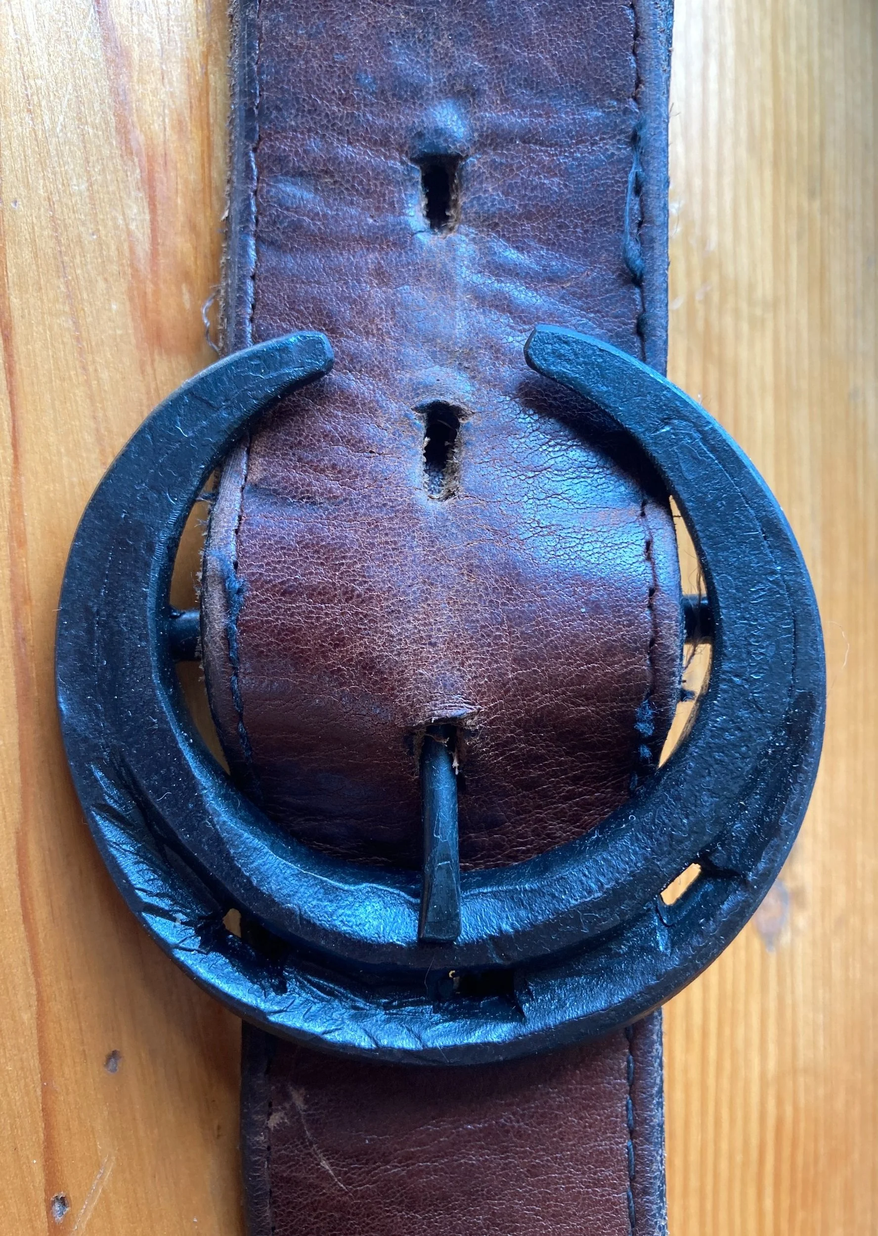 Our ‘Crescent Horseshoe Buckle’. Spent horseshoes are reborn as belt buckles. The horseshoe aspect is maintained, but also takes on a whole new form with the tapered, crescent shape. Watch a short clip of these being made!