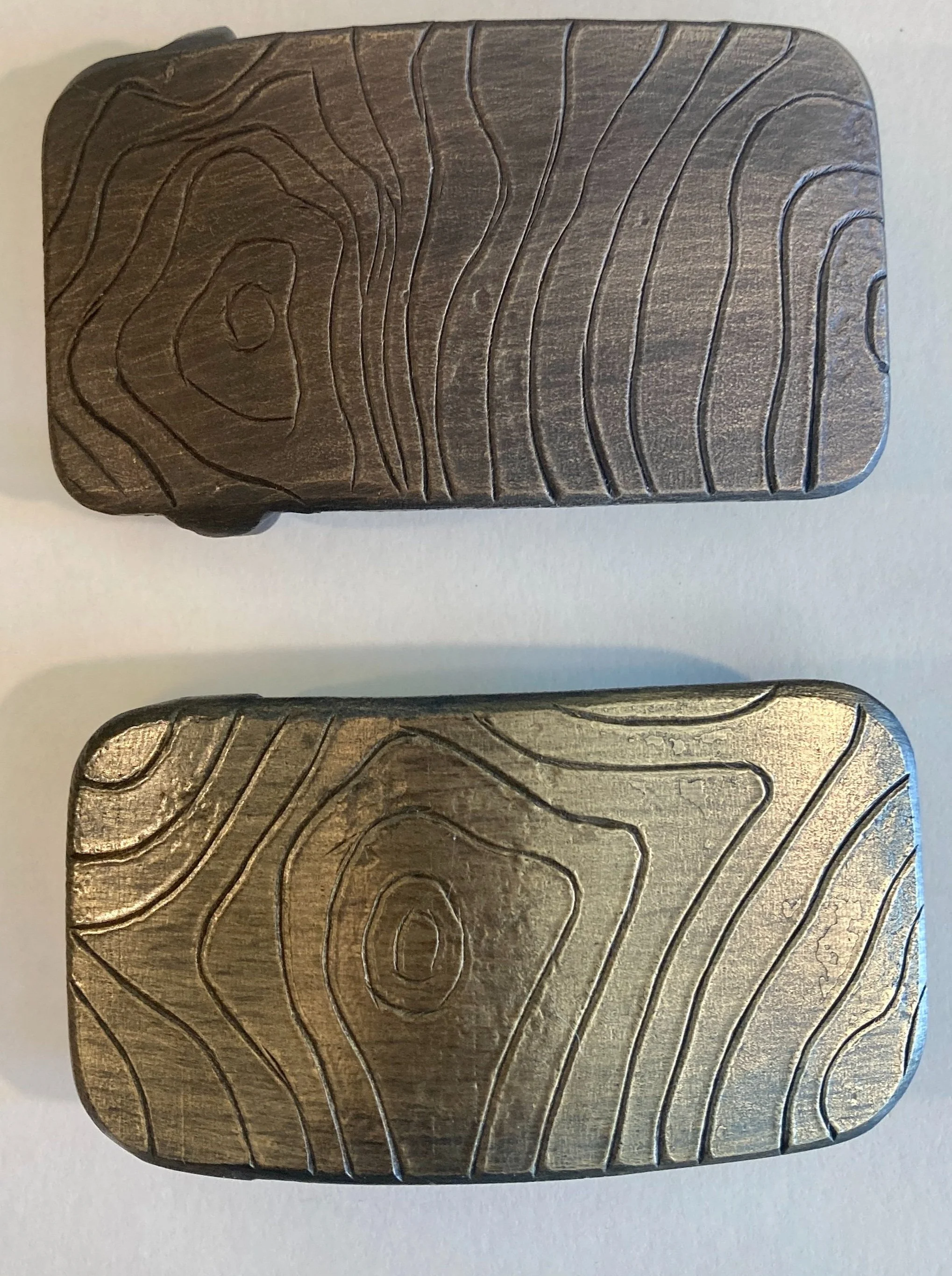 Other than holding up one’s pants, I’ve found that making belt buckles is a great way to experiment with the various textures, colors and forms available when working with metal.