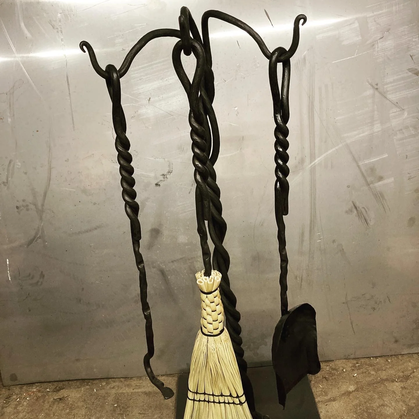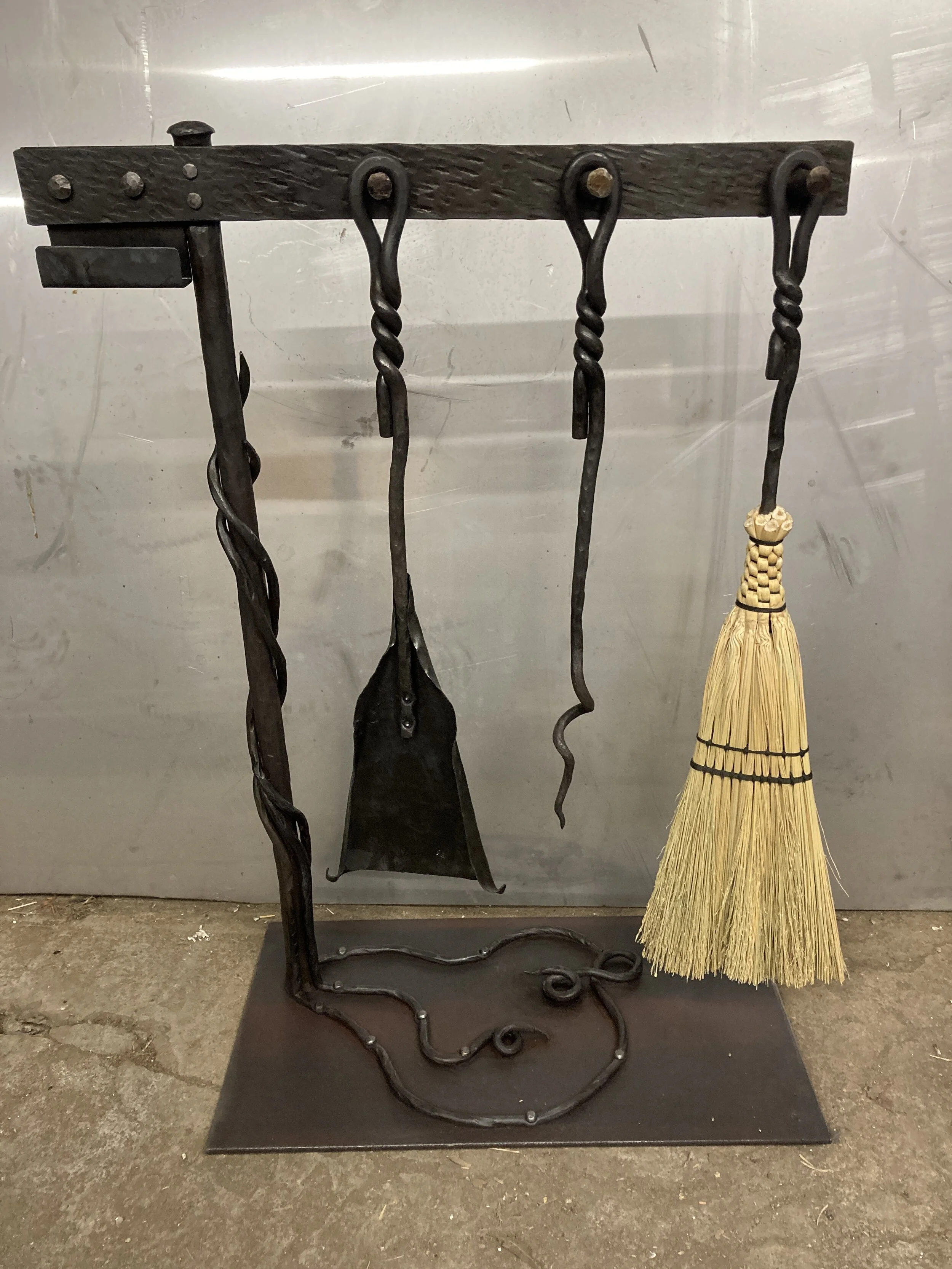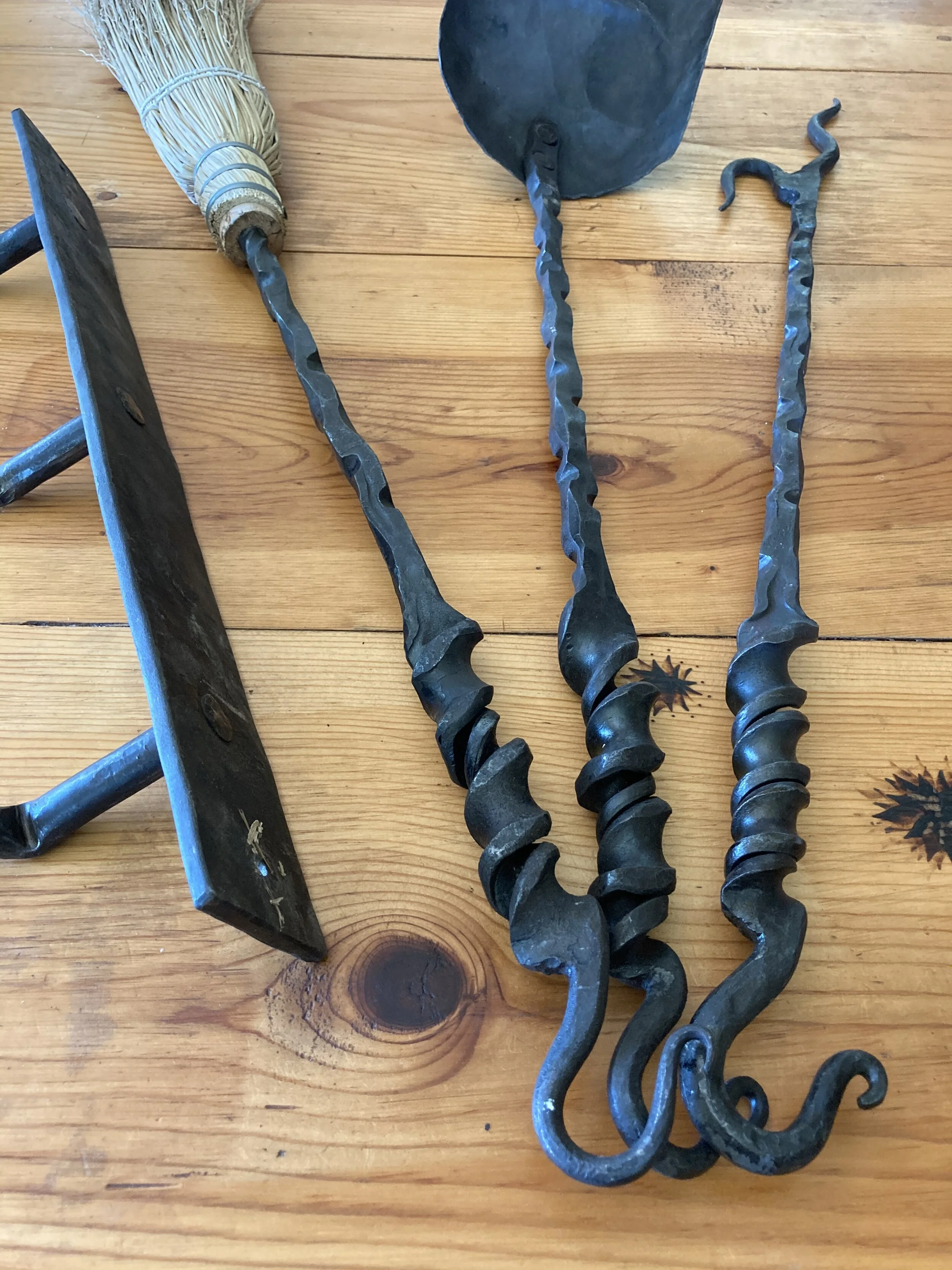 Fire tools (including pokers, tongs, brooms, shovels and axes). Brooms are hand-made in coordination with Missoula based broom-craft artist Grace Brogan of FoxFire Goods.